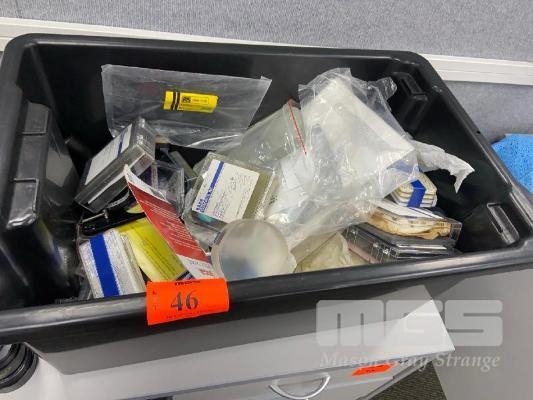TUB & CONTENTS INCLUDING SCOPES, OPTICAL, LENS, OPTICAL COMPONENTS, HOLDERS, ETC