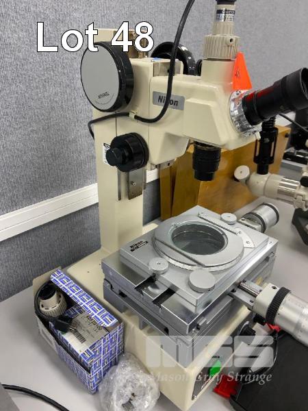 MEASURING MICROSCOPE, NIKON MOD: MM-11 MEASURESCOPE XY AXIS ADJUSTABLE BASE WITH ACCESSORIES