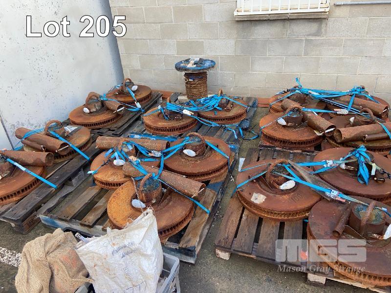 16 x OCEAN FLOOR TIE DOWN/MOORING WEIGHTS & CABLE DRUM, 6 x PALLETS