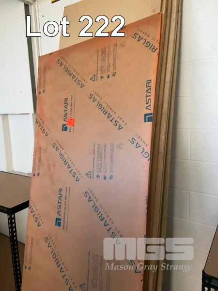 7 x PARTICLE BOARD PALLET RACK SHELVES & PERSPEX