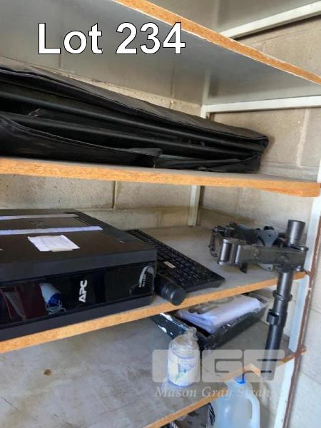 RACK & CONTENTS INCLUDING UPS, MONITOR ARM, TOOL BAG, ETC