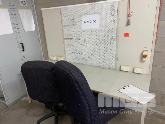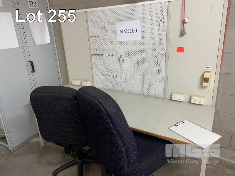 TECHNICIANS BENCH & BACKBOARD, 240cm & 2 x CHAIRS