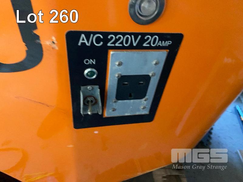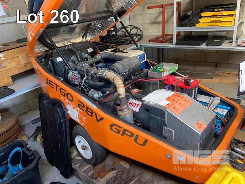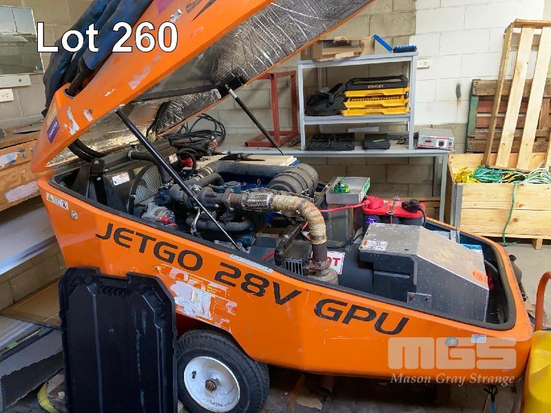 TARMAC GENSET, AERO SPECIALISTS JETGO GENERATOR MOD: 550MTI S/NO: 308144 POWERED BY KUBOTA V150S-T 4 CYLINDER TURBO DIESEL ENGINE DOM: 2014 28V DC, 2500w-220V INVERTER MAX AMP: 637.2 MIN 51 AMP IN TRAILER ENCLOSURE, RING PULL & JUMP LEADS