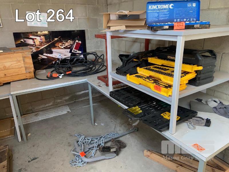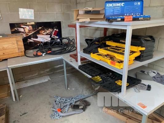 4 x ASSORTED TUBE STEEL TABLES, GREY LAMINATE