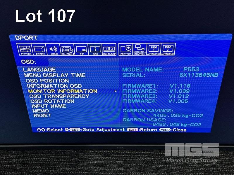 MONITOR, NEC MULTISYNC P553 55" COMMERCIAL LCD DISPLAY WITH WALL MOUNT BRACKET (NO REMOTE, NO STAND)