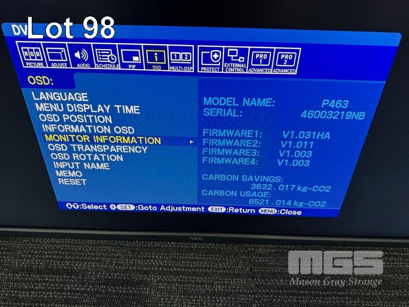 MONITOR, NEC MULTISYNC P463 46" COMMERCIAL LCD DISPLAY (NO REMOTE, NO STAND) S/N:46003219NB