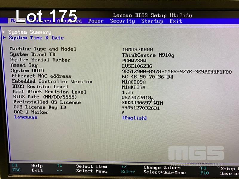 DESKTOP PC, LENOVO THINKCENTRE M910q TINY, CORE i5 7500T (7TH GEN) @ 2.7GHz, 8GB DDR4 RAM, 500GB SATA HDD, Wi-Fi, BLUETOOTH, WINDOWS 10 PRO INSTALLED & POWER SUPPLY (NO KEYBOARD, NO MOUSE) S/N:PC0W7S8W