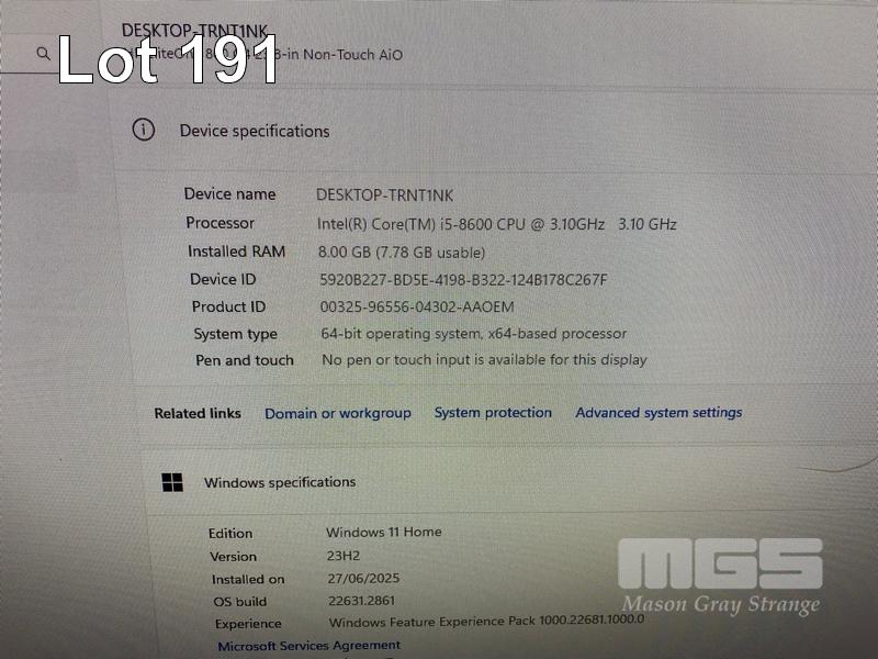 ALL-IN-ONE PC, HP ELITEONE 800 G4, CORE i5 8600 (8TH GEN) @ 3.1GHz, 8GB DDR4 RAM, 256GB NVMe M.2 SSD, INBUILT 23.8" WIDESCREEN (1920x1080), INTEL UHD GRAPHICS, Wi-Fi, BLUETOOTH, WINDOWS 11 HOME INSTALLED, KEYBOARD & MOUSE (NOTE: SCRATCH ON SCREEN) S/N:AUD9170BJB