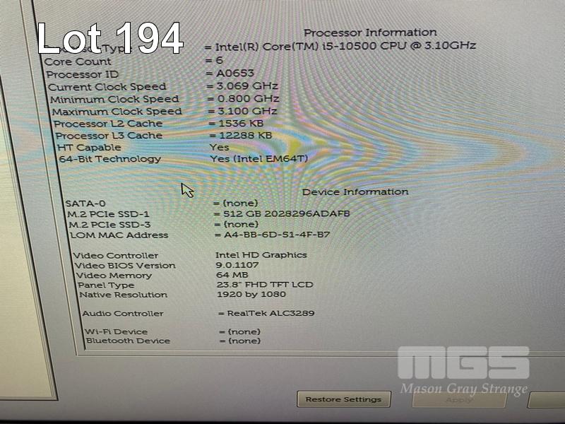 ALL-IN-ONE PC, DELL OPTIPLEX 7480, CORE i5 10500 (10TH GEN) @ 3.1GHz, 8GB DDR4 RAM, 512GB NVMe M.2 SSD, INBUILT 23.8" FHD WIDESCREEN (1920x1080), INTEL HD VIDEO, WEBCAM, 5 x USB, 1 x USB-C, WINDOWS 11 HOME INSTALLED, KEYBOARD & MOUSE S/N:4XQ6X63