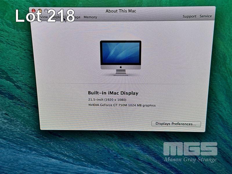 APPLE iMAC (A1418), CORE i5 4570S (4TH GEN) @ 2.9GHz, 8GB DDR3 RAM, 1.12TB FUSION DRIVE, BUILT-IN 21.5" DISPLAY (1920x1080), 1GB NVIDIA GEFORCE GT 750M VIDEO, Wi-Fi, BLUETOOTH, MAC OS 10.9 INSTALLED (NO KEYBOARD, NO MOUSE, NO CABLE) S/N:C02M3037F8J8