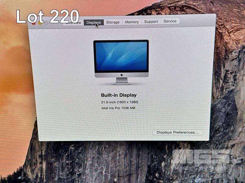 APPLE iMAC (A1418), CORE i5 4570R (4TH GEN) @ 2.7GHz, 8GB DDR3 RAM, 1TB SATA HDD, BUILT-IN 21.5" DISPLAY (1920x1080), INTEL IRIS PRO VIDEO, Wi-Fi, BLUETOOTH, MAC OS 10.10 INSTALLED (NO KEYBOARD, NO MOUSE, NO CABLE) S/N:C02P402CF8J7
