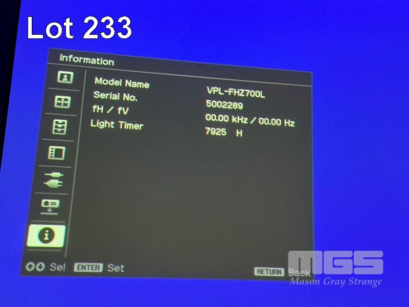 LASER PROJECTOR, SONY VPL-FHZ700L WUXGA LARGE VENUE 3LCD, 7,000 LUMENS, 7,925 HOURS SHOWING (NO REMOTE) S/N:5002289