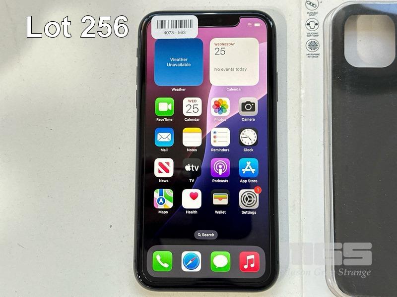 APPLE iPHONE 11, 64GB, BLACK, MODEL MHDA3X/A, BATTERY HEALTH 97% WITH CABLE, CHARGER, COVER & SCREEN PROTECTOR S/N:DX3HRUL8N735