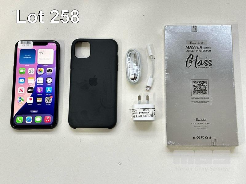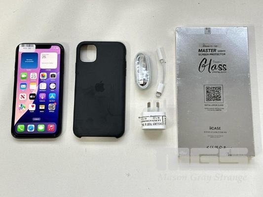 APPLE iPHONE 11, 64GB, BLACK, MODEL MHDA3X/A, BATTERY HEALTH 89% WITH CABLE, CHARGER, COVER & SCREEN PROTECTOR S/N:FFWHP0L6N735