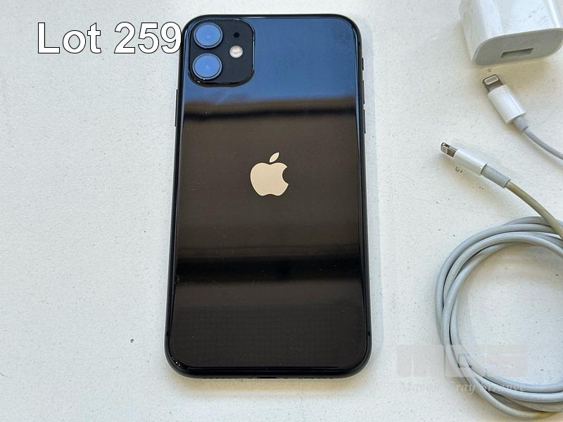 APPLE iPHONE 11, 64GB, BLACK, MODEL MHDA3X/A, BATTERY HEALTH 86% WITH CABLE, CHARGER & COVER (NOTE: MINOR SCRATCHES ON SCREEN) S/N:DX3HRRYFN735