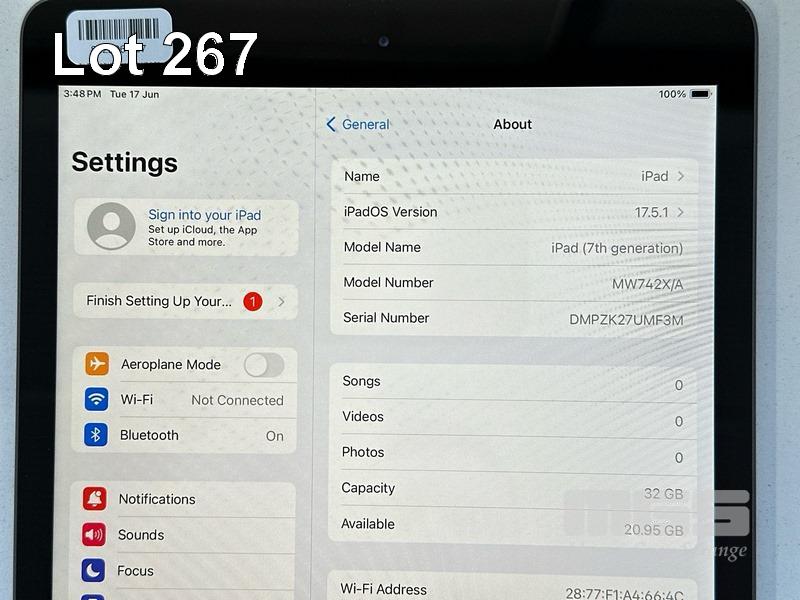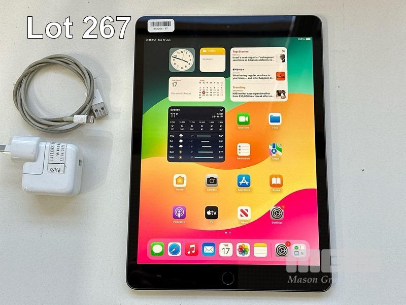 APPLE iPAD 7TH GEN, 32GB, Wi-Fi, SPACE GREY, MODEL MW742X/A, A2197 WITH CABLE & CHARGER (NOTE: MINOR SCRATCHES ON SCREEN) S/N:DMPZK27UMF3M