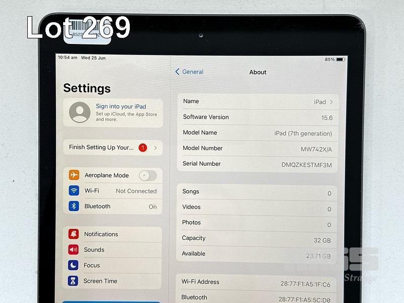 APPLE iPAD 7TH GEN, 32GB, Wi-Fi, SPACE GREY, MODEL MW742X/A, A2197 (NO CABLE, NO CHARGER) (NOTE: MINOR DAMAGE, MINOR SCRATCHES ON SCREEN) S/N:DMQZKESTMF3M