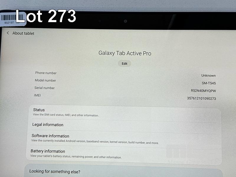 SAMSUNG GALAXY TAB ACTIVE PRO, 64GB, Wi-Fi, CELLULAR, MODEL SM-T545 (NO USB-C CABLE, NO CHARGER) S/N:R52N40MYQPW