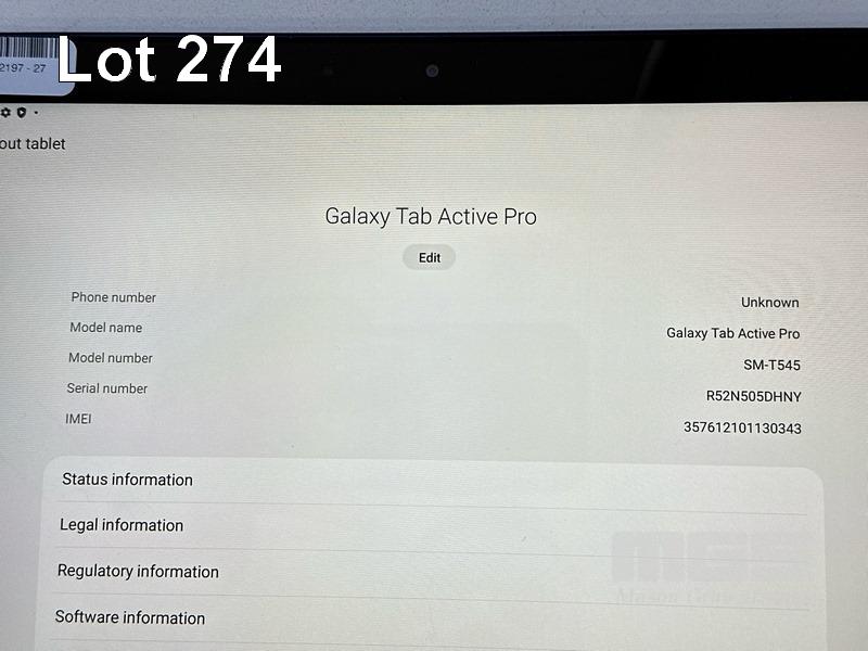 SAMSUNG GALAXY TAB ACTIVE PRO, 64GB, Wi-Fi, CELLULAR, MODEL SM-T545 (NO USB-C CABLE, NO CHARGER) S/N:R52N505DHNY