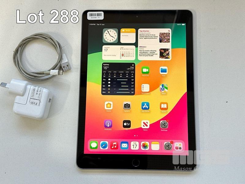 APPLE iPAD 6TH GEN, 32GB, Wi-Fi, SPACE GREY, MODEL MR7F2X/A, A1893 WITH CABLE & CHARGER (NOTE: MINOR SCRATCHES ON SCREEN) S/N:DMQX93KZJF8J