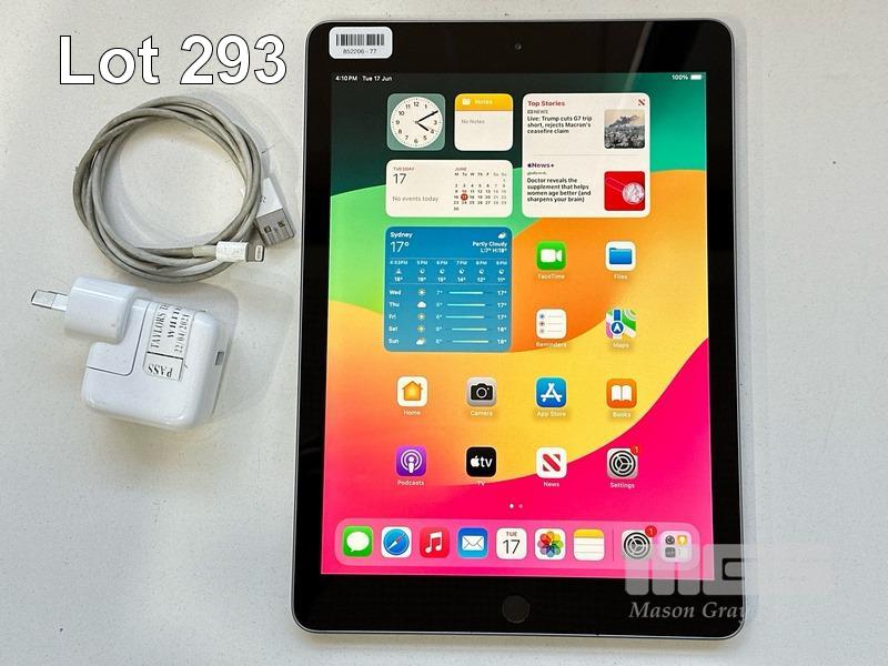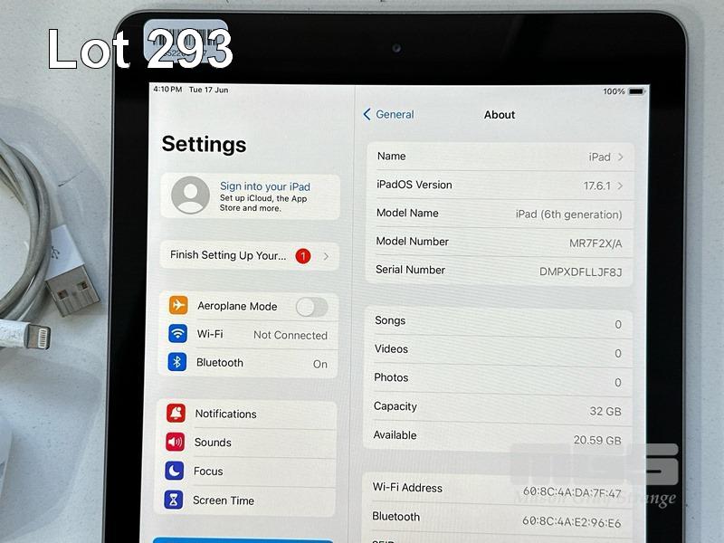 APPLE iPAD 6TH GEN, 32GB, Wi-Fi, SPACE GREY, MODEL MR7F2X/A, A1893 WITH CABLE & CHARGER (NOTE: MINOR SCRATCHES ON SCREEN) S/N:DMPXDFLLJF8J