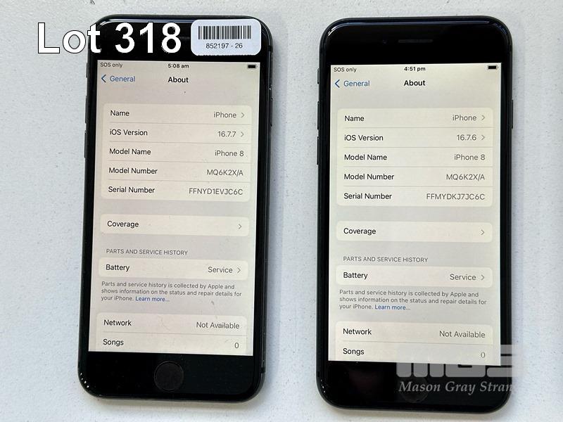 4 x APPLE iPHONE 8, 64GB, SPACE GREY, MODEL MQ6K2X/A (NOTE: ALL BATTERY SERVICE MESSAGE) (NO CABLES, NO CHARGERS)