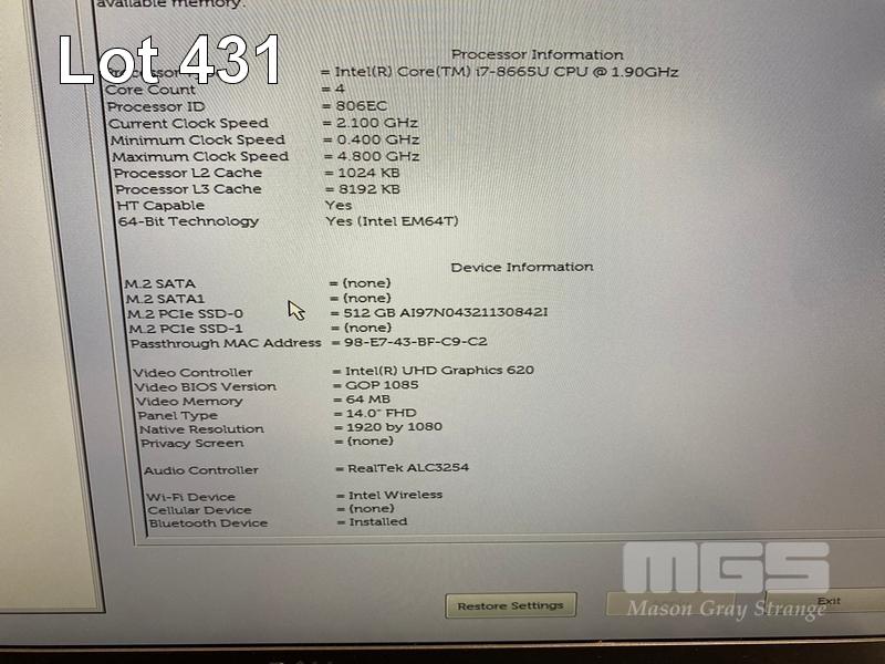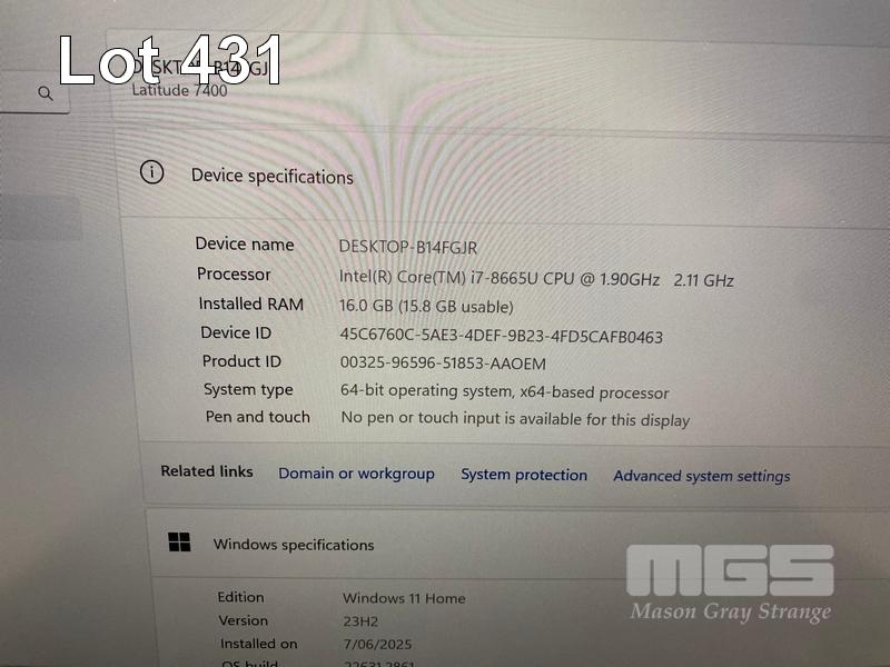 LAPTOP, DELL LATITUDE 7400, CORE i7 8665U (8TH GEN) @ 1.9GHz, 16GB DDR4 RAM, 512GB NVMe M.2 SSD, 14" WIDESCREEN (1920x1080), INTEL UHD GRAPHICS 620, Wi-Fi, BLUETOOTH, WINDOWS 11 HOME INSTALLED & POWER SUPPLY S/N:GB852Z2