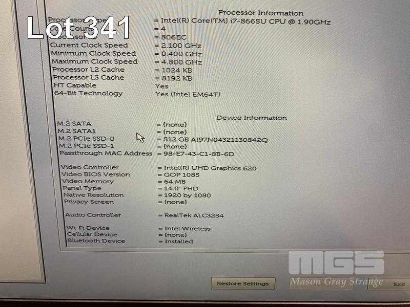 LAPTOP, DELL LATITUDE 7400, CORE i7 8665U (8TH GEN) @ 1.9GHz, 16GB DDR4 RAM, 512GB NVMe M.2 SSD, 14" WIDESCREEN (1920x1080), INTEL UHD GRAPHICS 620, Wi-Fi, BLUETOOTH, WINDOWS 11 HOME INSTALLED & POWER SUPPLY S/N:2SM52Z2