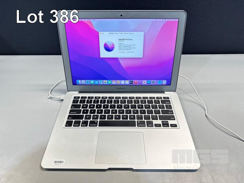 LAPTOP, APPLE MACBOOK AIR (A1466), CORE i5 5350U (5TH GEN) @ 1.8GHz, 8GB DDR3 RAM, 128GB SSD, 13.3" DISPLAY (1440x900), INTEL HD GRAPHICS 6000, Wi-Fi, BLUETOOTH, MAC OS 12 INSTALLED (NO POWER SUPPLY) (NOTE: BATTERY NOT CHARGING) S/N:FVHXPJSPJ1WK