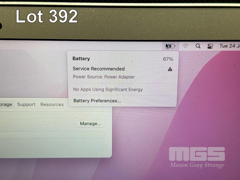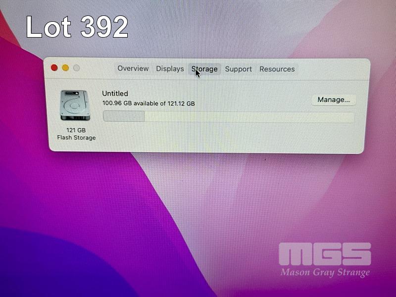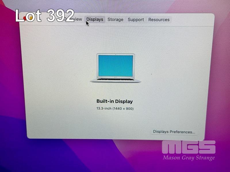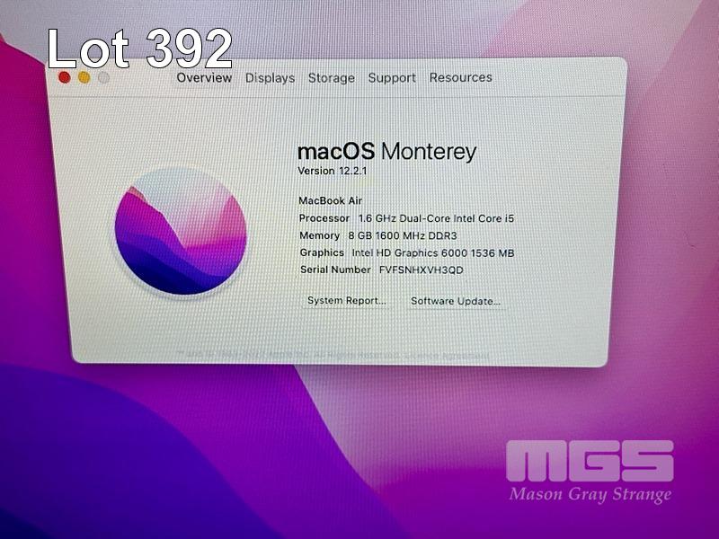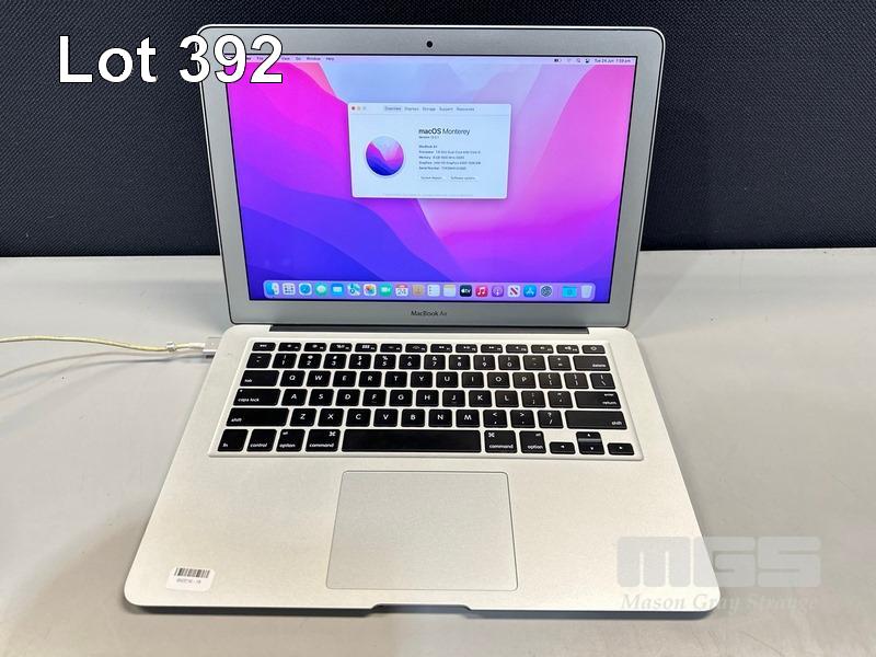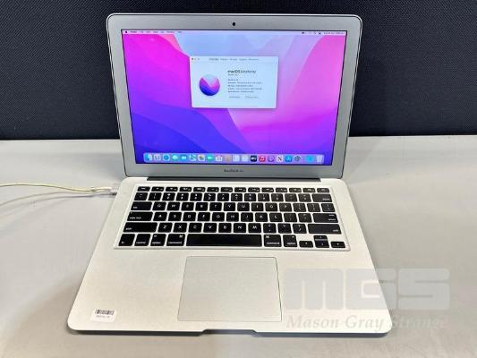 LAPTOP, APPLE MACBOOK AIR (A1466), CORE i5 5250U (5TH GEN) @ 1.6GHz, 8GB DDR3 RAM, 128GB SSD, 13.3" DISPLAY (1440x900), INTEL HD GRAPHICS 6000, Wi-Fi, BLUETOOTH, MAC OS 12 INSTALLED (NO POWER SUPPLY) (NOTE: "BATTERY SERVICE RECOMMENDED" MESSAGE, BATTERY NOT CHARGING) S/N:FVFSNHXVH3QD
