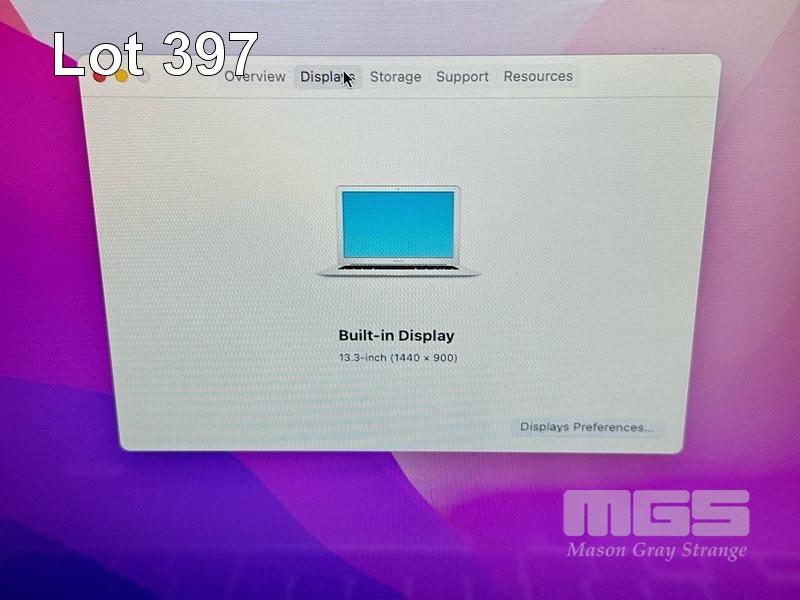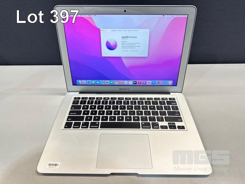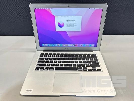 LAPTOP, APPLE MACBOOK AIR (A1466), CORE i5 5250U (5TH GEN) @ 1.6GHz, 8GB DDR3 RAM, 128GB SSD, 13.3" DISPLAY (1440x900), INTEL HD GRAPHICS 6000, Wi-Fi, BLUETOOTH, MAC OS 12 INSTALLED (NO POWER SUPPLY) (NOTE: SCRATCH ON SCREEN, "BATTERY SERVICE RECOMMENDED" MESSAGE) S/N:FVFSP28DH3QD