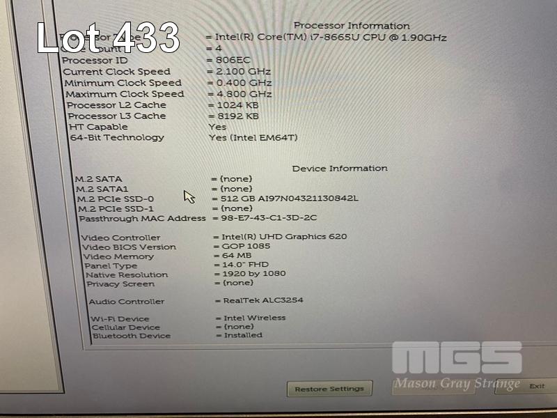LAPTOP, DELL LATITUDE 7400, CORE i7 8665U (8TH GEN) @ 1.9GHz, 16GB DDR4 RAM, 512GB NVMe M.2 SSD, 14" WIDESCREEN (1920x1080), INTEL UHD GRAPHICS 620, Wi-Fi, BLUETOOTH, WINDOWS 11 HOME INSTALLED & POWER SUPPLY (NOTE: MARKS ON SCREEN) S/N:5J252Z2