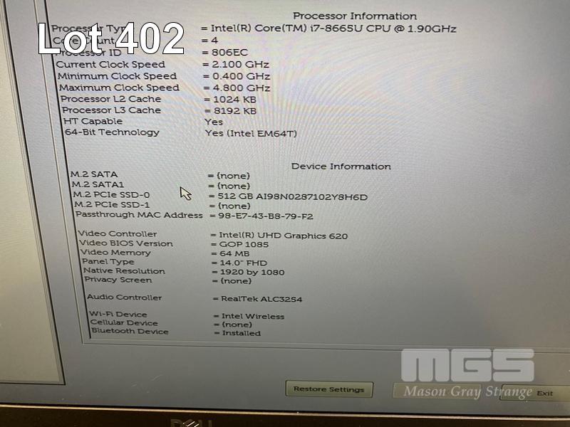 LAPTOP, DELL LATITUDE 7400, CORE i7 8665U (8TH GEN) @ 1.9GHz, 16GB DDR4 RAM, 512GB NVMe M.2 SSD, 14" WIDESCREEN (1920x1080), INTEL UHD GRAPHICS 620, Wi-Fi, BLUETOOTH, WINDOWS 11 HOME INSTALLED & POWER SUPPLY S/N:4P2J2Z2