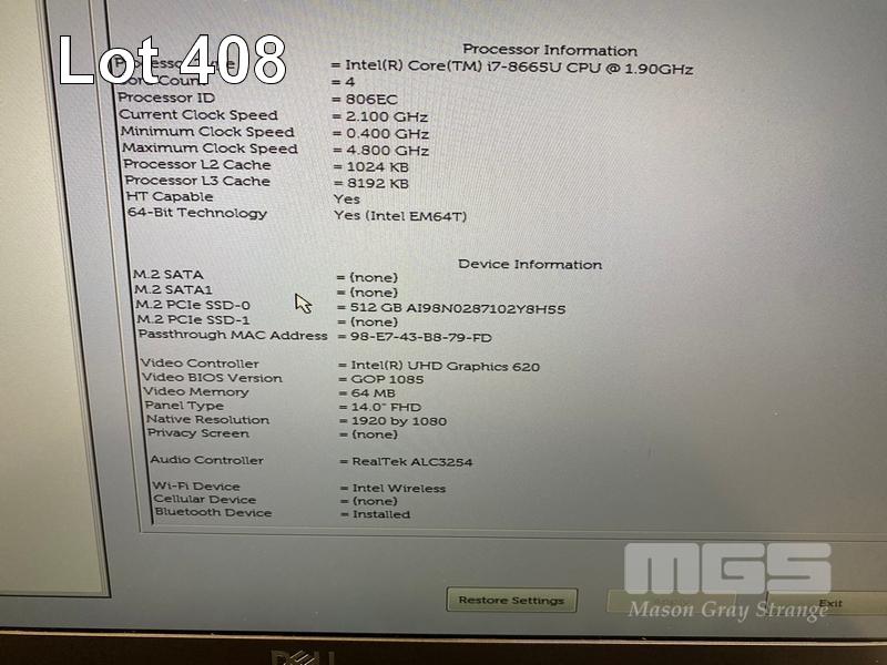 LAPTOP, DELL LATITUDE 7400, CORE i7 8665U (8TH GEN) @ 1.9GHz, 16GB DDR4 RAM, 512GB NVMe M.2 SSD, 14" WIDESCREEN (1920x1080), INTEL UHD GRAPHICS 620, Wi-Fi, BLUETOOTH, WINDOWS 11 HOME INSTALLED & POWER SUPPLY S/N:BJ2J2Z2