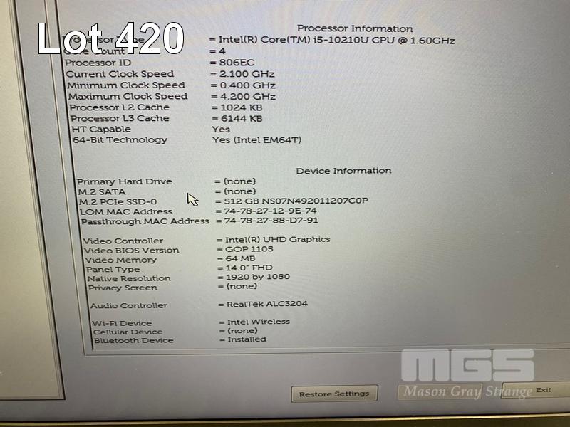 LAPTOP, DELL LATITUDE 5410, CORE i5 10210U (10TH GEN) @ 1.6GHz, 8GB DDR4 RAM, 512GB NVMe M.2 SSD, 14" WIDESCREEN (1920x1080), INTEL UHD GRAPHICS, Wi-Fi, BLUETOOTH, WINDOWS 11 HOME INSTALLED & POWER SUPPLY (NOTE: BATTERY NOT HOLDING CHARGE, MINOR MARKS ON SCREEN) S/N:4YQ0R73