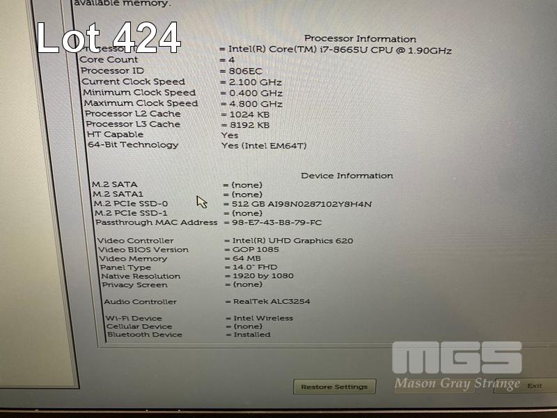 LAPTOP, DELL LATITUDE 7400, CORE i7 8665U (8TH GEN) @ 1.9GHz, 16GB DDR4 RAM, 512GB NVMe M.2 SSD, 14" WIDESCREEN (1920x1080), INTEL UHD GRAPHICS 620, Wi-Fi, BLUETOOTH, WINDOWS 11 HOME INSTALLED & POWER SUPPLY S/N:DK2J2Z2
