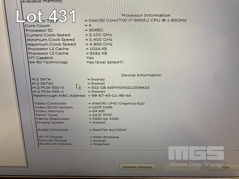 LAPTOP, DELL LATITUDE 7400, CORE i7 8665U (8TH GEN) @ 1.9GHz, 16GB DDR4 RAM, 512GB NVMe M.2 SSD, 14" WIDESCREEN (1920x1080), INTEL UHD GRAPHICS 620, Wi-Fi, BLUETOOTH, WINDOWS 11 HOME INSTALLED & POWER SUPPLY S/N:9PM52Z2