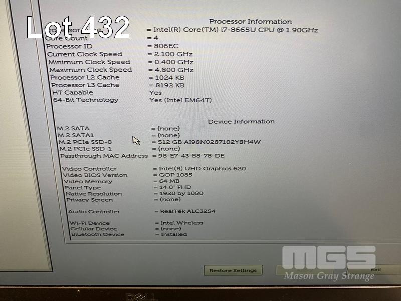 LAPTOP, DELL LATITUDE 7400, CORE i7 8665U (8TH GEN) @ 1.9GHz, 16GB DDR4 RAM, 512GB NVMe M.2 SSD, 14" WIDESCREEN (1920x1080), INTEL UHD GRAPHICS 620, Wi-Fi, BLUETOOTH, WINDOWS 11 HOME INSTALLED & POWER SUPPLY S/N:4WHF2Z2