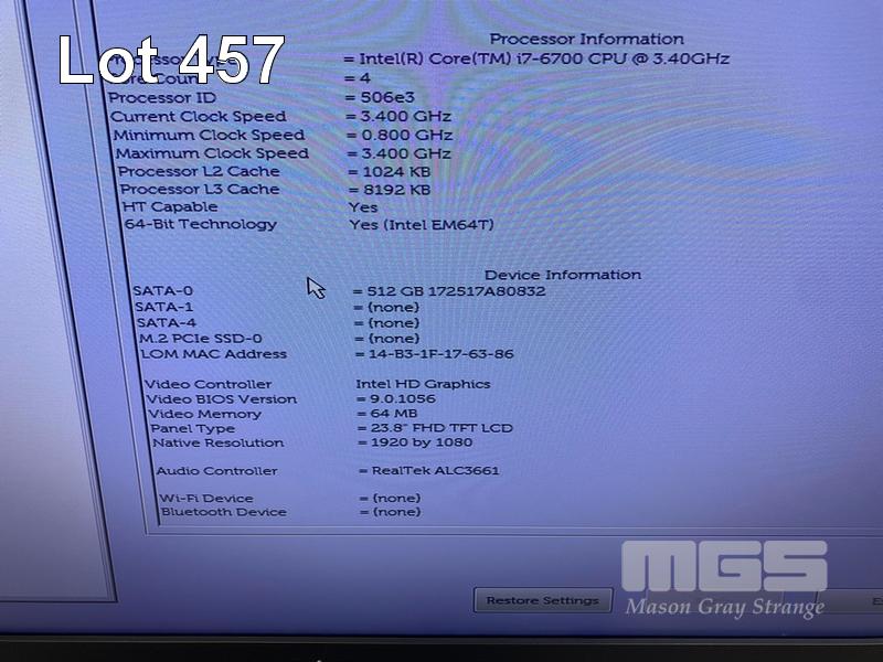 ALL-IN-ONE PC, DELL OPTIPLEX 7450, CORE i7 6700 (6TH GEN) @ 3.4GHz, 16GB DDR4 RAM, 512GB SSD, INBUILT 23.8" FHD WIDESCREEN (1920x1080), INTEL HD VIDEO, WEBCAM, 7 x USB, 1 x USB-C, WINDOWS 10 HOME INSTALLED, KEYBOARD & MOUSE S/N:3GGXTK2