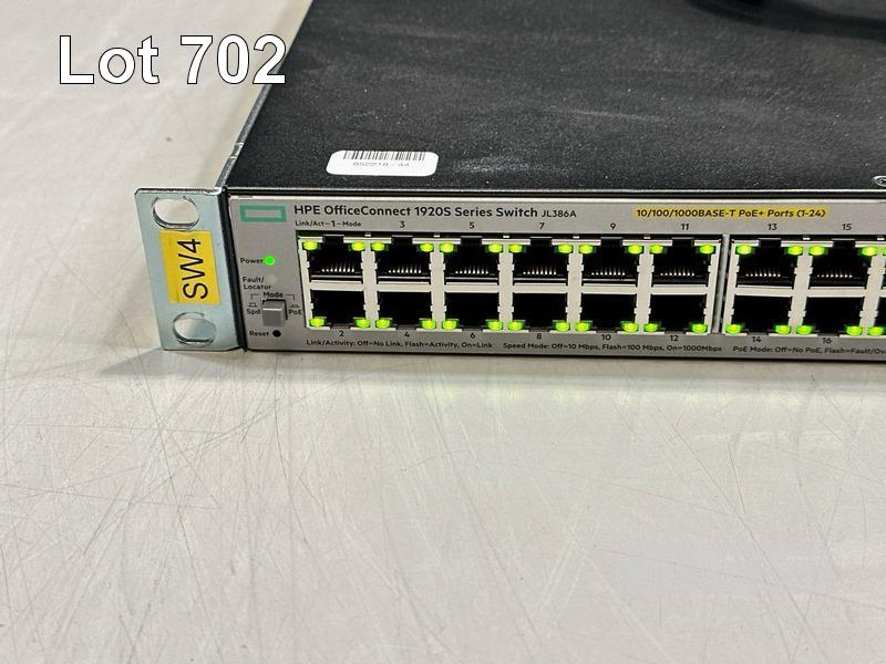 HPE OFFICECONNECT 1920S SERIES 48G 4SFP PPoE+ 370W NETWORK SWITCH, JL386A WITH NOTCH POWER CABLE S/N:CN02K3R019