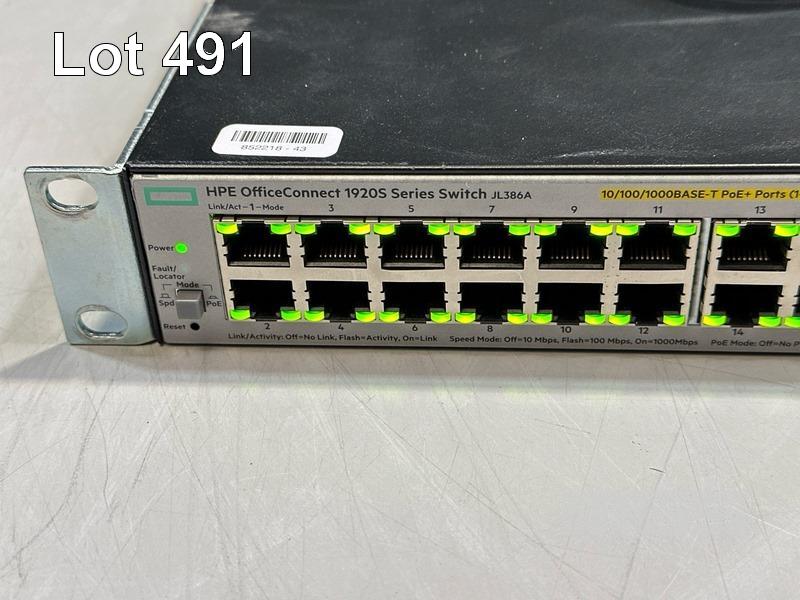 HPE OFFICECONNECT 1920S SERIES 48G 4SFP PPoE+ 370W NETWORK SWITCH, JL386A WITH NOTCH POWER CABLE S/N:CN81K3R1KW