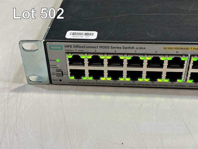 HPE OFFICECONNECT 1920S SERIES 24G 2SFP PoE+ 370W NETWORK SWITCH, JL385A WITH NOTCH POWER CABLE S/N:CN73K3Q079