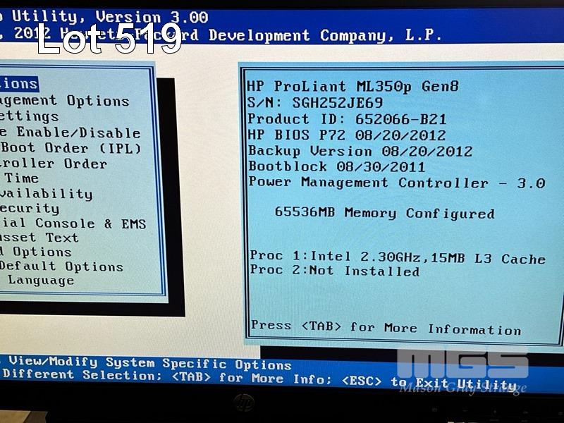 TOWER SERVER, HP PROLIANT ML350p GEN 8, XEON E5-2630 @ 2.3GHz, 64GB ECC DDR3 RAM, 10 x 600GB SAS HDD, HP LTO-5 ULTRIUM 3000 TAPE DRIVE S/N:SGH252JE69
