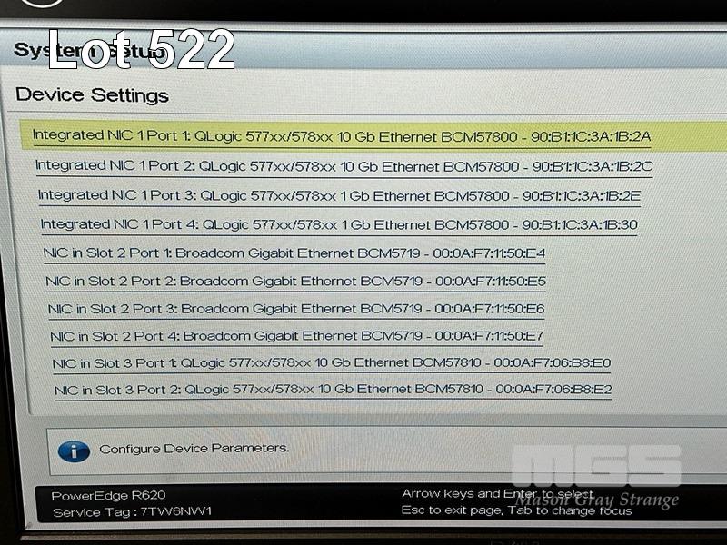 RACKMOUNT SERVER, DELL POWEREDGE R620, 1U, 2 x XEON E5-2665 @ 2.4GHz, 160GB ECC DDR3 RAM, NO HDD, 2-PORT QLOGIC 10Gb ETHERNET (BCM57810), 4-PORT BROADCOM ETHERNET (BCM5719), 2 x 750W PSU (NO CABLES) S/N:7TW6NW1