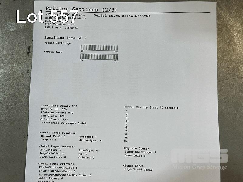 PRINTER, BROTHER MFC-L2750DW MONO LASER MULTIFUNCTION, ADF, USB, NETWORK, 5 PAGES (TEST PAGE ATTACHED) S/N:E78115G1N353905