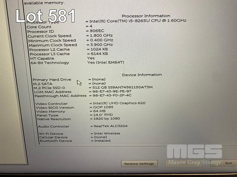 LAPTOP, DELL LATITUDE 5400, CORE i5 8265U (8TH GEN) @ 1.6GHz, 8GB DDR4 RAM, 512GB NVMe M.2 SSD, 14" WIDESCREEN (1920x1080), INTEL UHD GRAPHICS 620, Wi-Fi, BLUETOOTH, WINDOWS 11 HOME INSTALLED & POWER SUPPLY S/N:F7MX2Z2