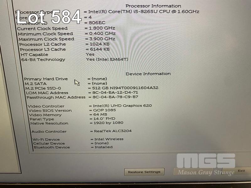 LAPTOP, DELL LATITUDE 5400, CORE i5 8265U (8TH GEN) @ 1.6GHz, 8GB DDR4 RAM, 512GB NVMe M.2 SSD, 14" WIDESCREEN (1920x1080), INTEL UHD GRAPHICS 620, Wi-Fi, BLUETOOTH, WINDOWS 11 HOME INSTALLED & POWER SUPPLY S/N:CSH53X2