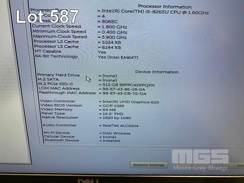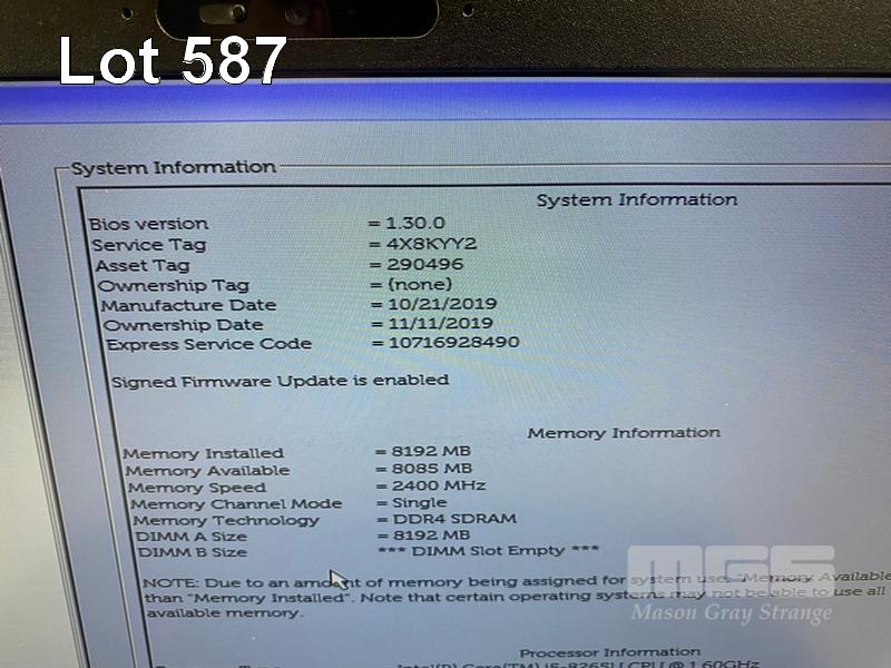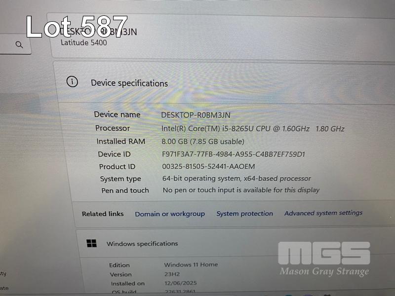 LAPTOP, DELL LATITUDE 5400, CORE i5 8265U (8TH GEN) @ 1.6GHz, 8GB DDR4 RAM, 512GB NVMe M.2 SSD, 14" WIDESCREEN (1920x1080), INTEL UHD GRAPHICS 620, Wi-Fi, BLUETOOTH, WINDOWS 11 HOME INSTALLED & POWER SUPPLY (NOTE: USB PORT FAULTY, MARKS ON SCREEN) S/N:4X8KYY2