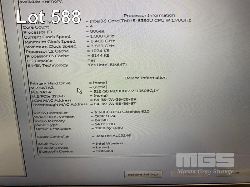 LAPTOP, DELL LATITUDE 5490, CORE i5 8350U (8TH GEN) @ 1.7GHz, 8GB DDR4 RAM, 512GB M.2 SSD, 14" WIDESCREEN (1920x1080), INTEL UHD GRAPHICS 620, Wi-Fi, BLUETOOTH, WINDOWS 11 HOME INSTALLED & POWER SUPPLY S/N:6825MQ2