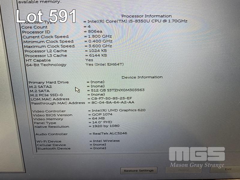 LAPTOP, DELL LATITUDE 5490, CORE i5 8350U (8TH GEN) @ 1.7GHz, 8GB DDR4 RAM, 512GB M.2 SSD, 14" WIDESCREEN (1920x1080), INTEL UHD GRAPHICS 620, Wi-Fi, BLUETOOTH, WINDOWS 11 HOME INSTALLED & POWER SUPPLY S/N:2545ZW2